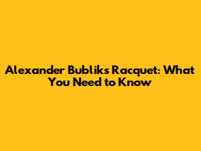 Alexander Bublik's Racquet: What You Need To Know