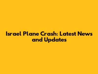 Israel Plane Crash: Latest News And Updates