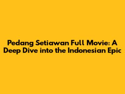Hey guys! Are you ready for an adventure? Let's talk about Pedang Setiawan, a full movie that's been capturing the hearts of Indonesian cinema lovers. In this article, we're going to explore everything you need to know about this epic tale, including where you can watch it and what makes it such a compelling watch. So, grab your popcorn, settle in, and let’s dive into the world of Pedang Setiawan.