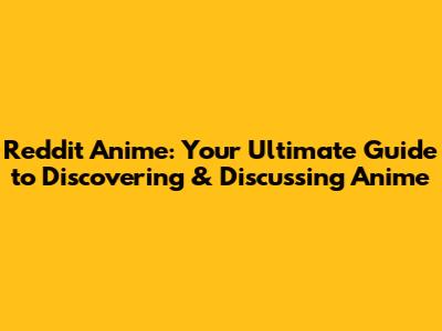 Reddit Anime: Your Ultimate Guide To Discovering & Discussing Anime